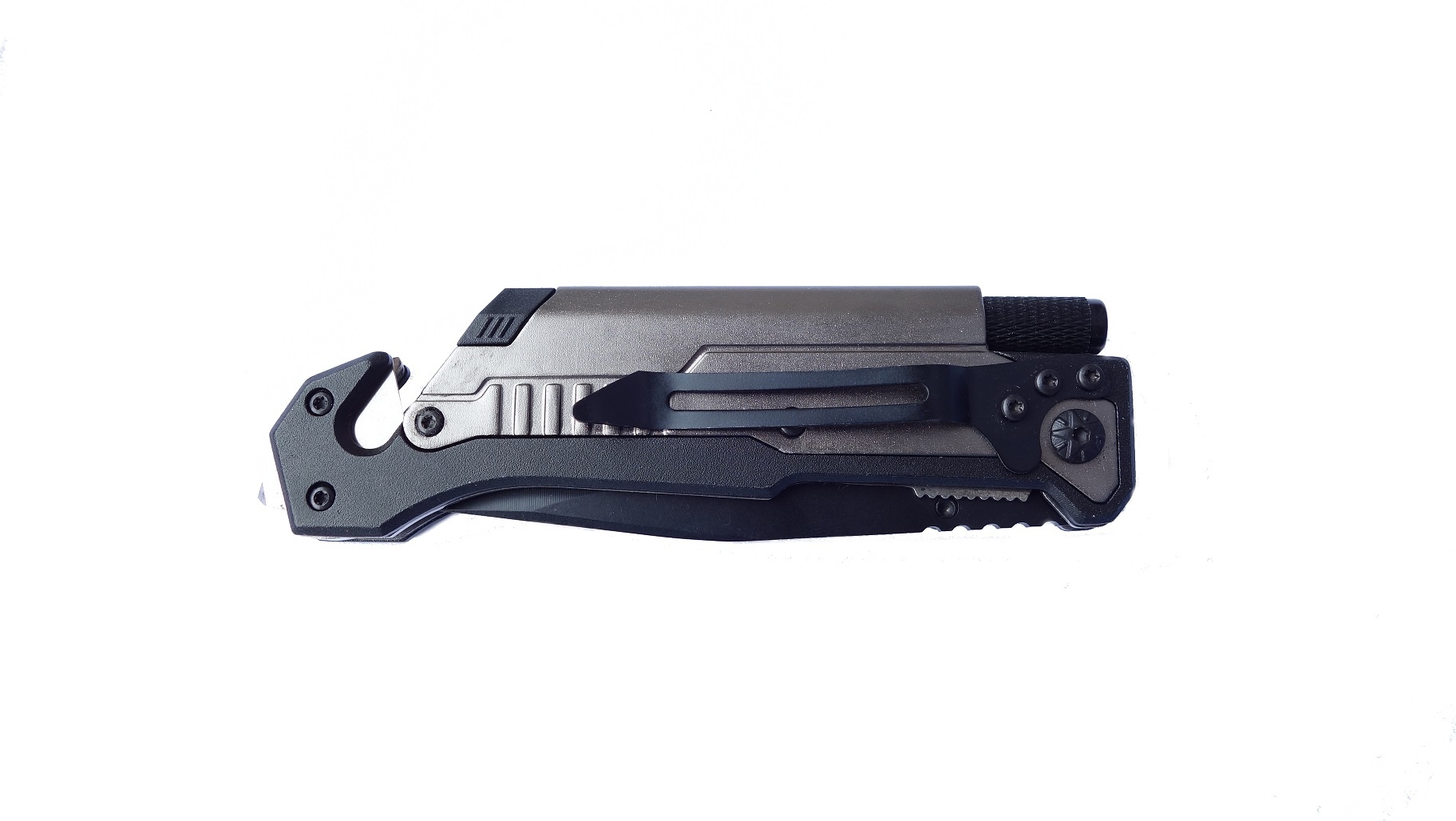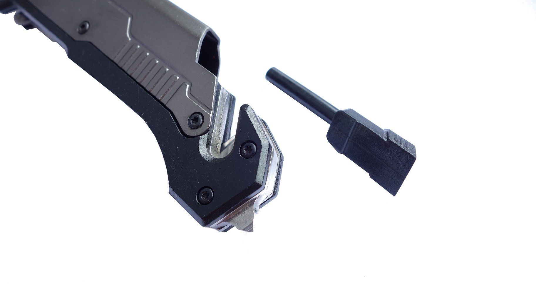 Stopa rękojeści wyposażona jest w tzw. nóż życia, czyli zbijak do szyb i zabezpieczone przed zranieniem krótkie ostrze (bez czubka) przeznaczone do szybkiego przecinania linek, pasów (np. bezpieczeństwa), ubrania, itp.