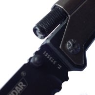Wygodnie otwierane, szerokie ostrze typudrop point (90x22 mm) zabezpieczone jest blokadą przeciw przypadkowemu zatrzaśnięciu. Ostrze otwierać można jedną ręką poprzez wypchnięcie kciukiem trzpienia znajdującego się z boku, w pobliżu mocowania ostrza do rękojeści, aż do pełnego otwarcia ostrza.